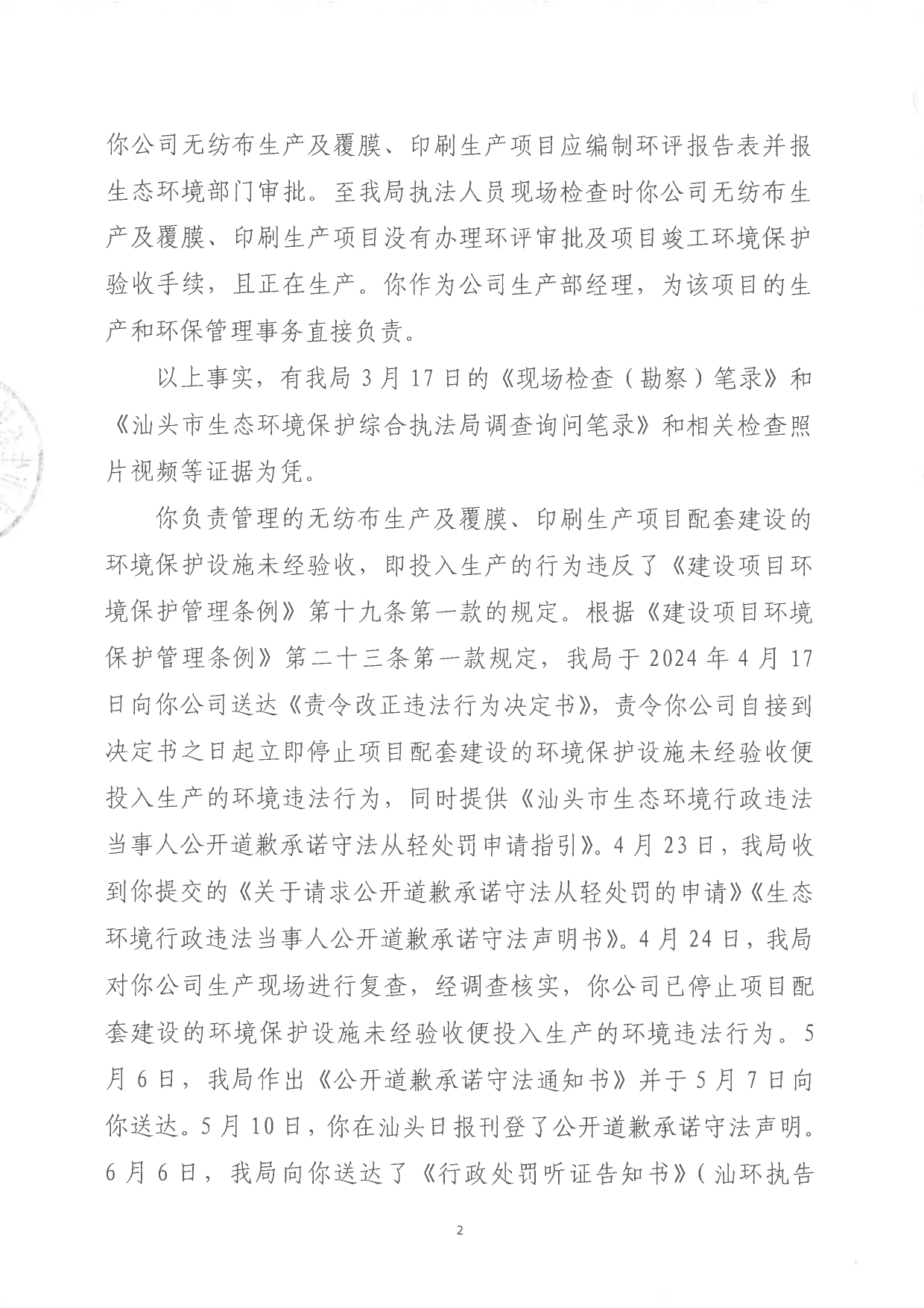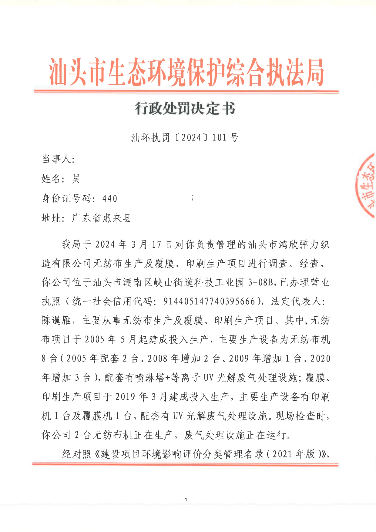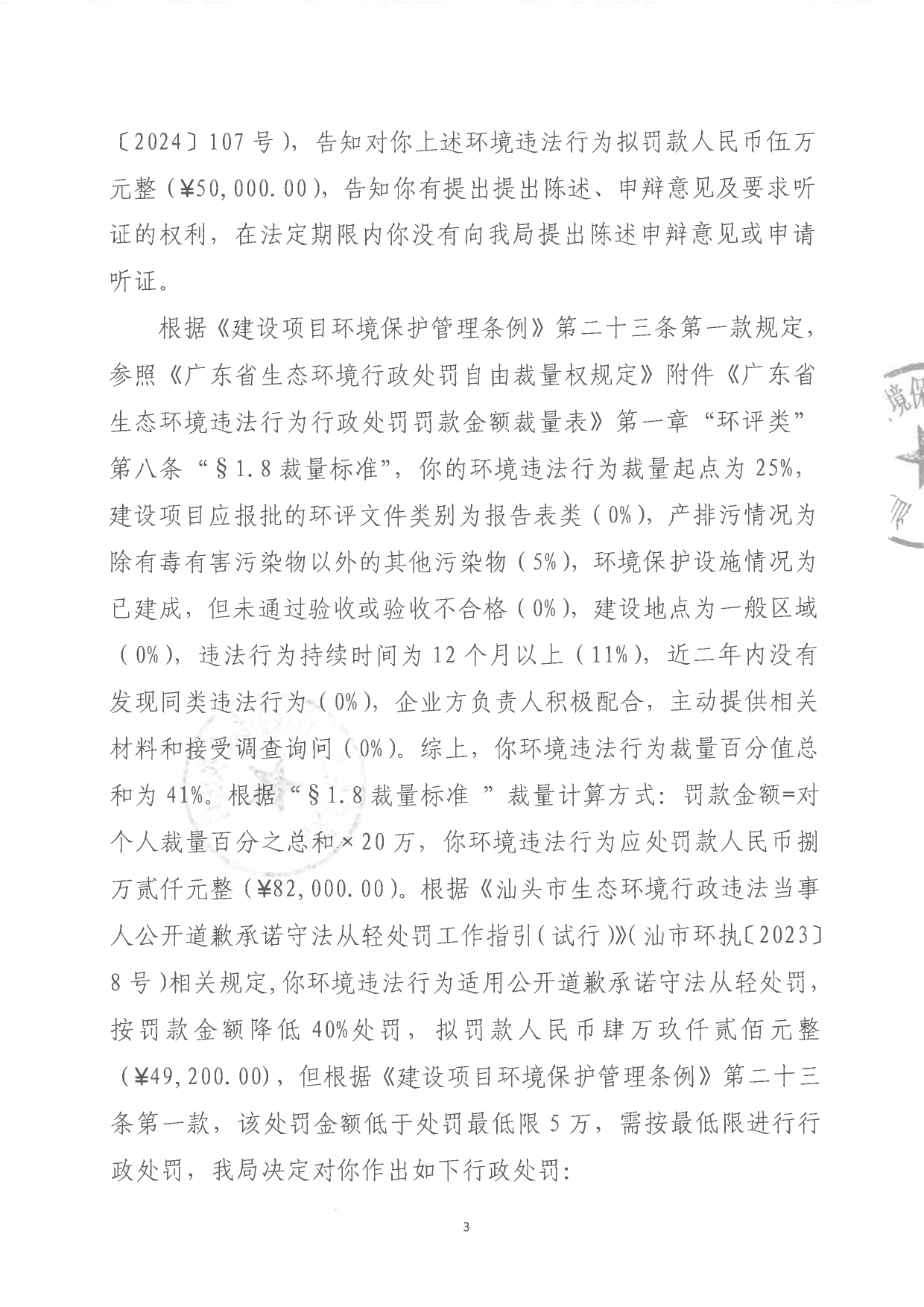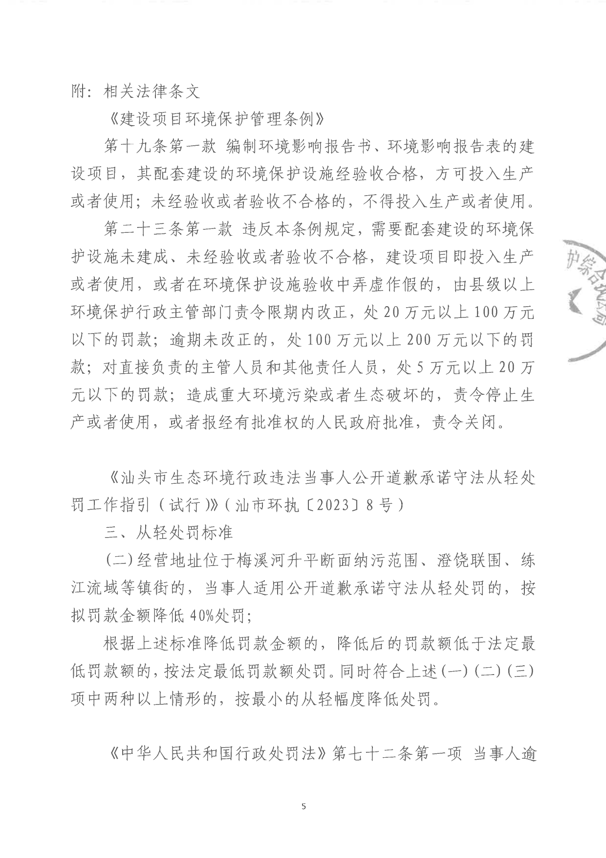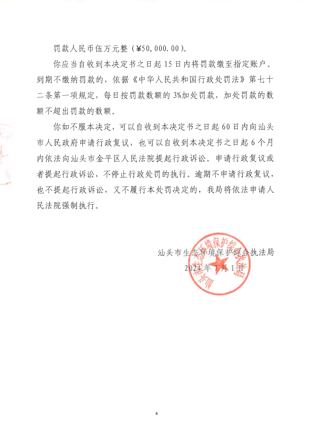 行政处罚决定书(汕环执罚〔2024〕101号)