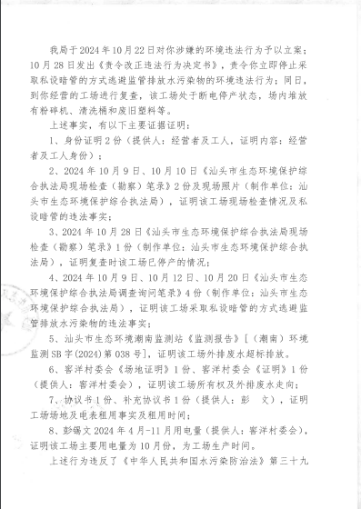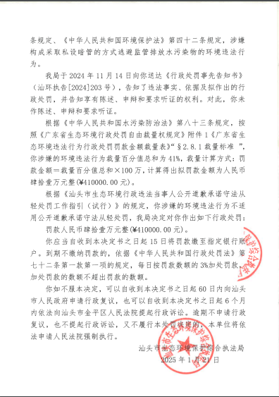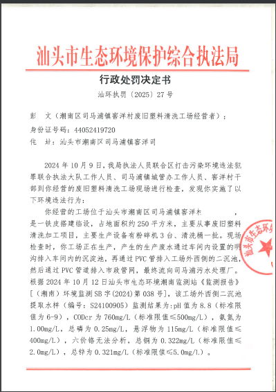 行政处罚决定书(汕环执罚〔2025〕27号)