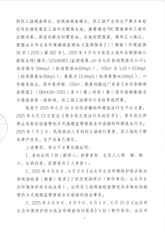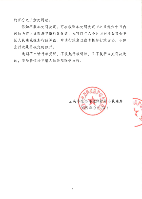 行政处罚决定书(汕环执罚〔2025〕124号)