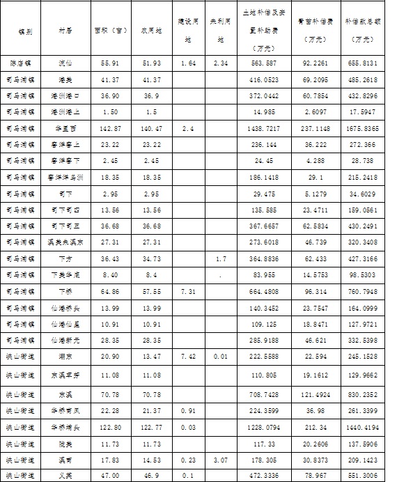 三、被征收土地的所有权人为我区陈店镇流仙经联社;司马浦镇港美经联社、港洲村港口经联社、港洲村港上经联社、华里西经联社、窖洋村窖上经联社、窖洋村窖下经联社、窖洋村洋乌洲经联社、司下经联社、司下村司四经联社、司下村司五经联社、溪美朱村溪东经联社、下方经联社、下美村华底经联社、下桥经联社、仙港村桥头经联社、仙港村仙星经联社、仙港村新元经联社;峡山街道潮东经联社、东溪村草芳经联社、东溪经联社、华桥村南凤经联社、华桥村埔头经联社、陇美经联社、溪南经联社、义英经联社。本次征收土地根据协议确定的补偿标准进行补偿,劳力安置及留用地安置采取留用地方式安置,征地面积、地类、补偿款额具体详见下表: