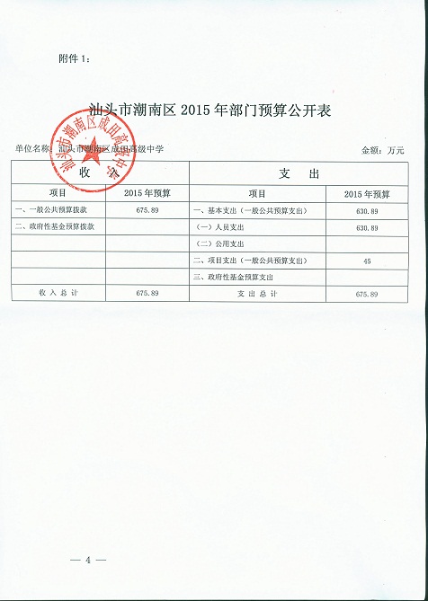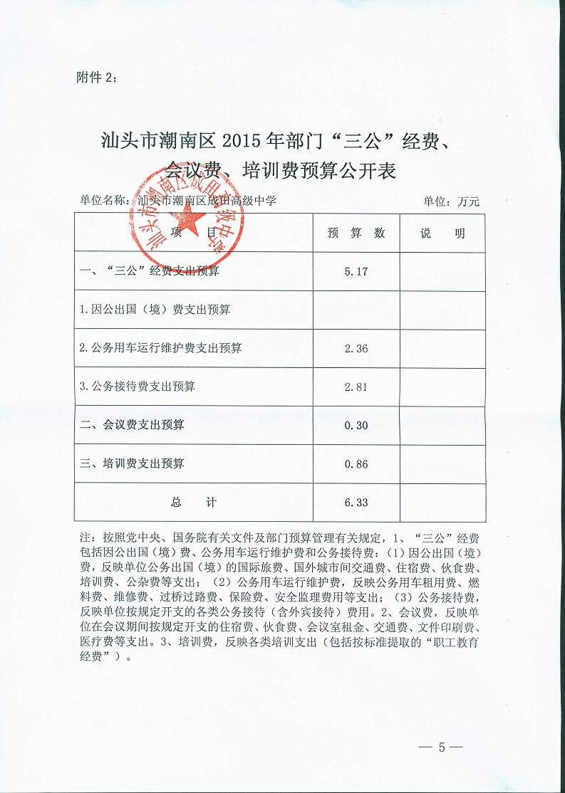 汕头市潮南区成田高级中学财政预决算公开