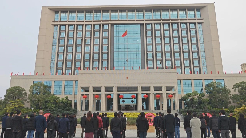 1月1日,迎着新年的晨曦,我区在区党政机关大院主楼前举行庄严的升国旗仪式,庆祝元旦,祝贺新年。